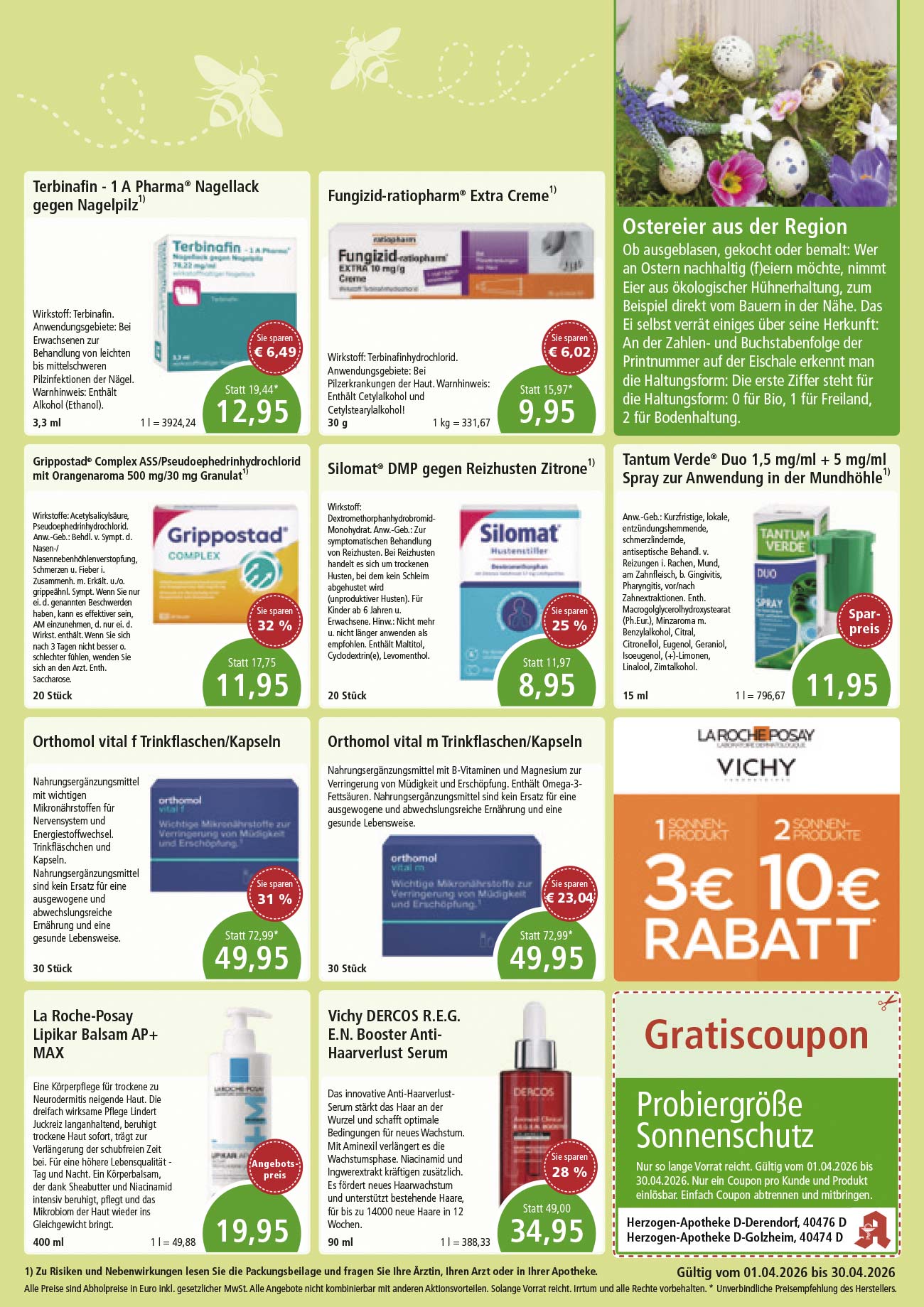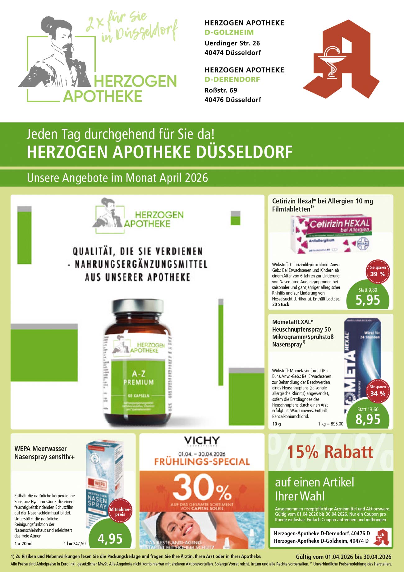 Vergessen Sie nicht, bei Ihrem nächsten Besuch nach unserem aktuellen Gratiscoupon zu fragen. Bleiben Sie gesund und informiert mit den monatlichen Angeboten Ihrer Herzogen Apotheke. Wir freuen uns auf Sie!