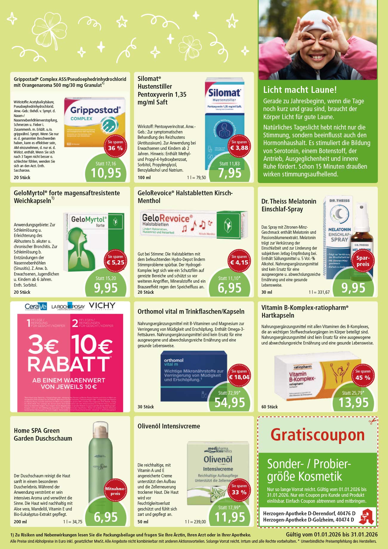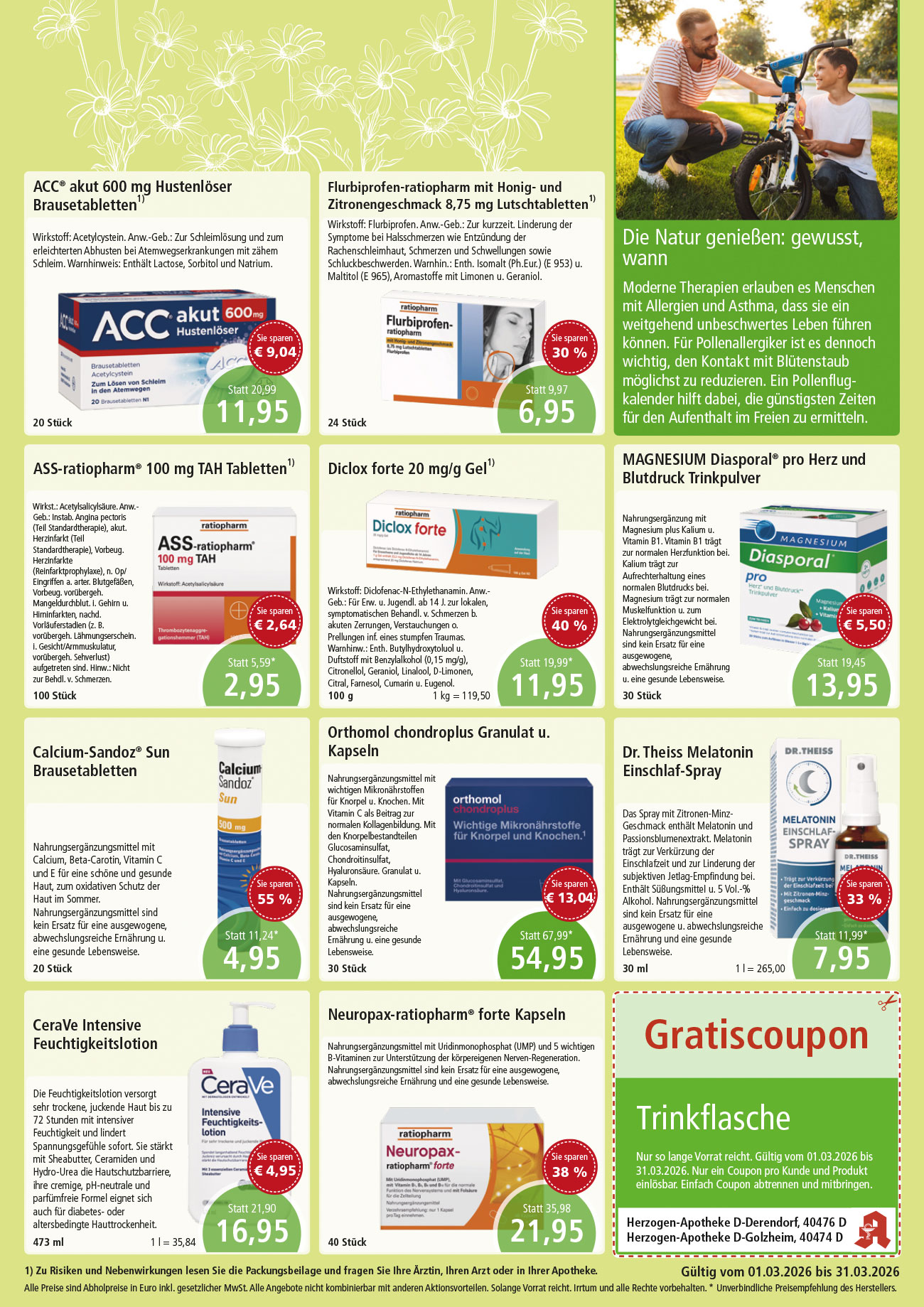 Vergessen Sie nicht, bei Ihrem nächsten Besuch nach unserem aktuellen Gratiscoupon zu fragen. Bleiben Sie gesund und informiert mit den monatlichen Angeboten Ihrer Herzogen Apotheke. Wir freuen uns auf Sie!